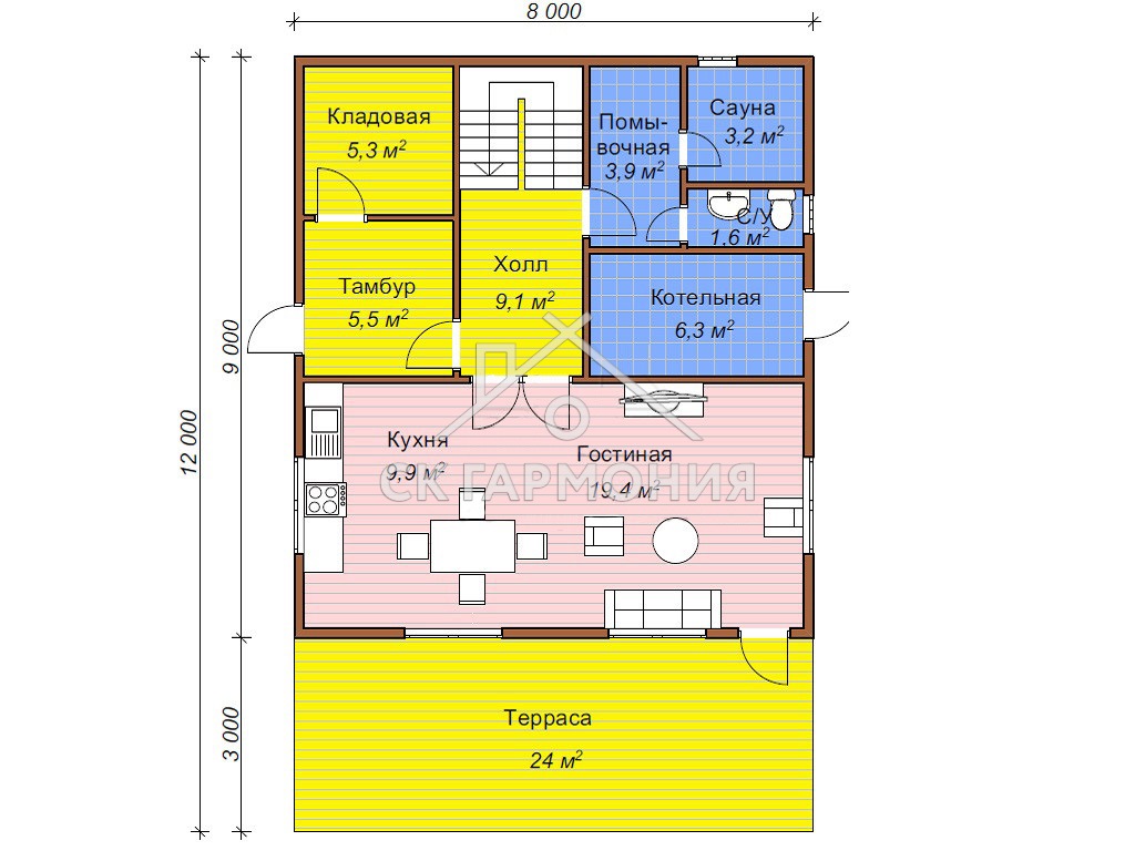 Цена строительства дома «Новороссийск» размером 8x12 и площадью 192 м2 - от 2 997 000 р.