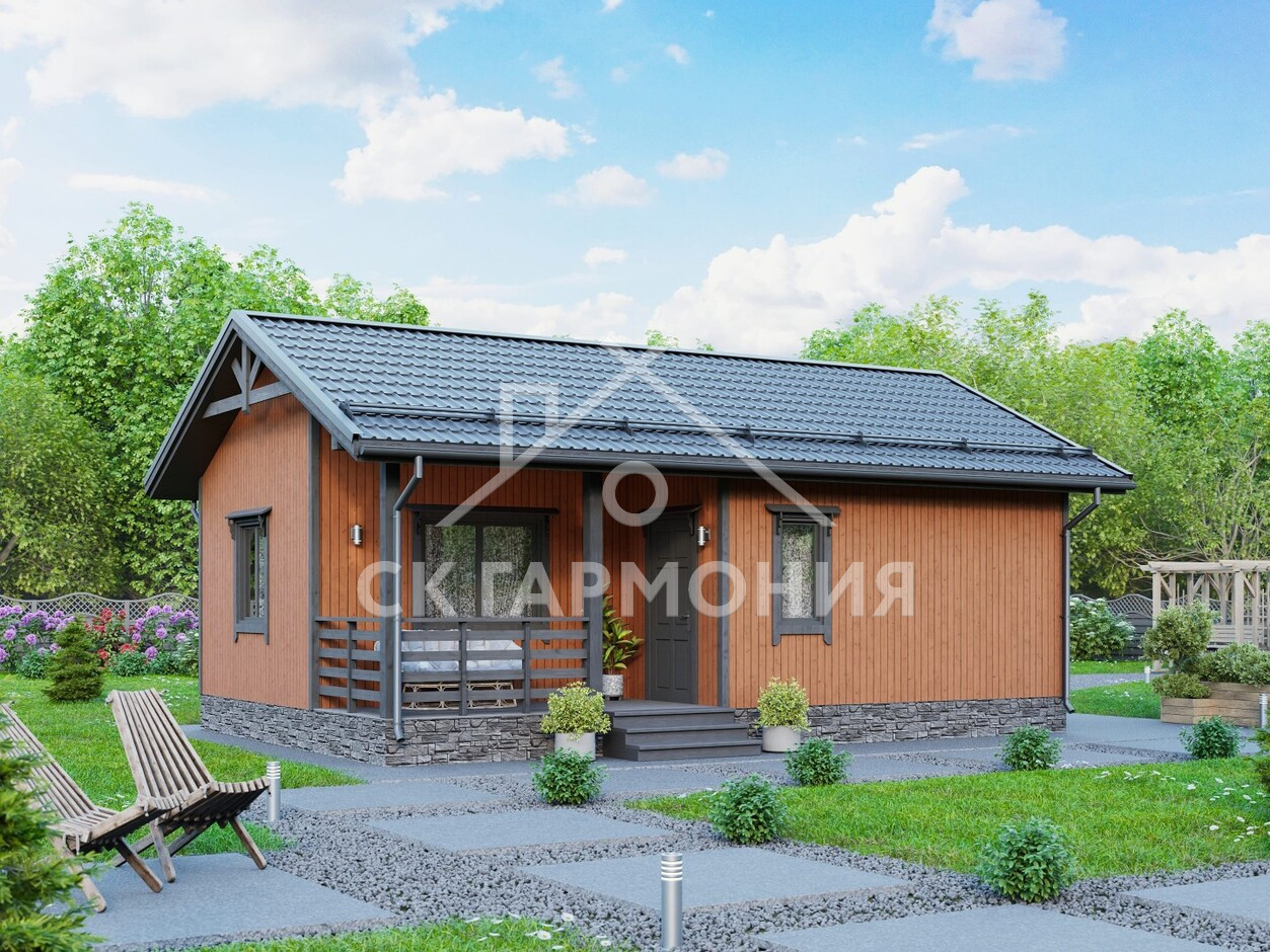 Проект дома «Васкелово» представляет собой элегантный одноэтажный дом с террасой, из экологически чистых материалов, который подходит для постоянного проживания. Строительство одноэтажного дома под ключ в Москве и Московской области потребует сроки до 21 дней. Вы можете заказать строительство без отделки или с чистовой отделкой и коммуникациями.