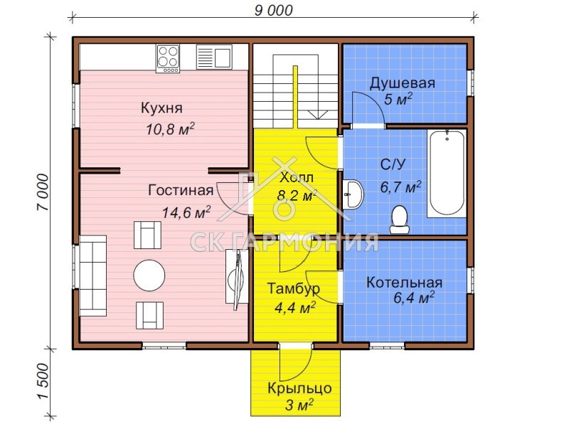 В стоимость дома не входит. Рассчитывается отдельно. Стоимость и тип фундамента зависят от проекта, от типа грунта и перепада высот на участке.