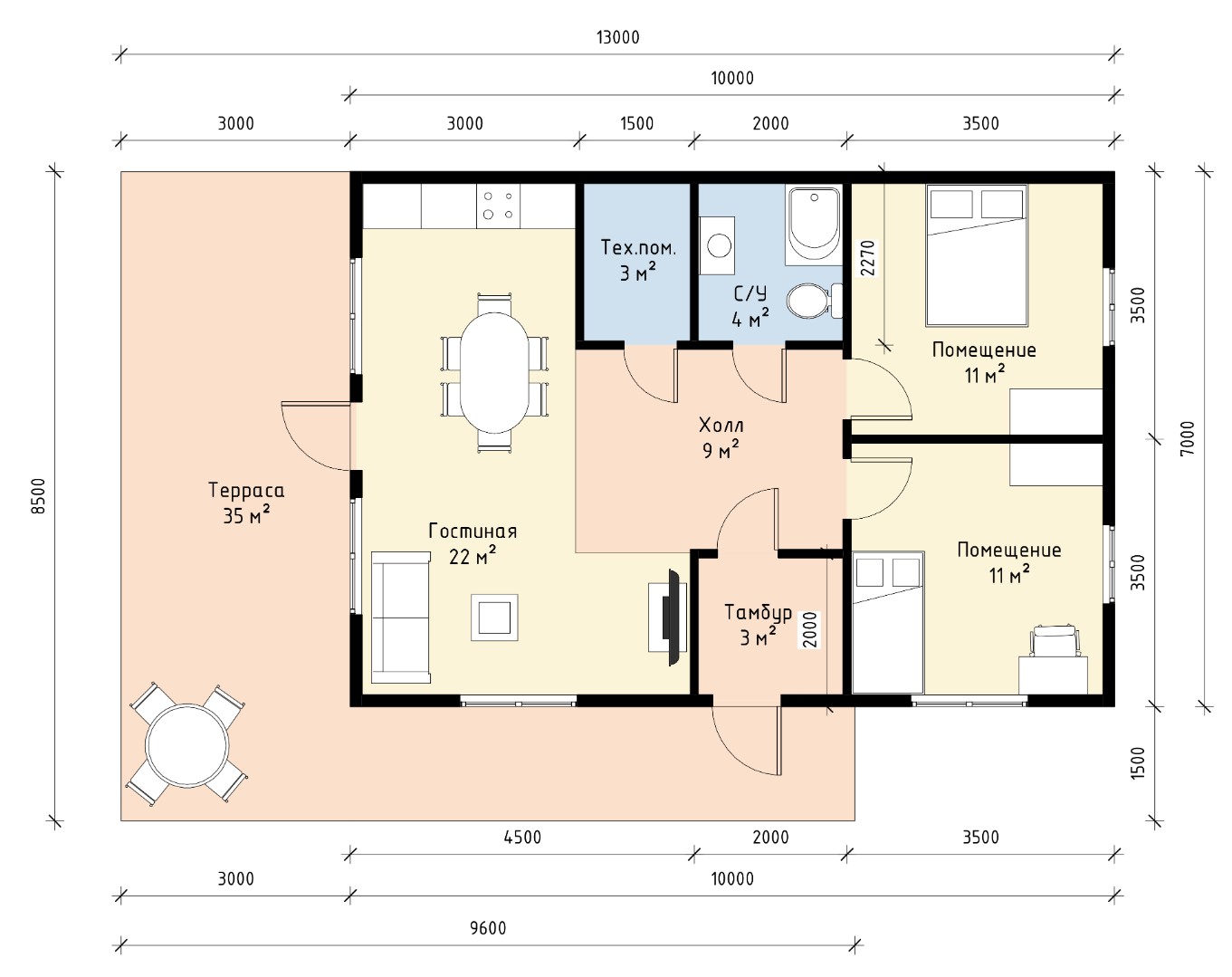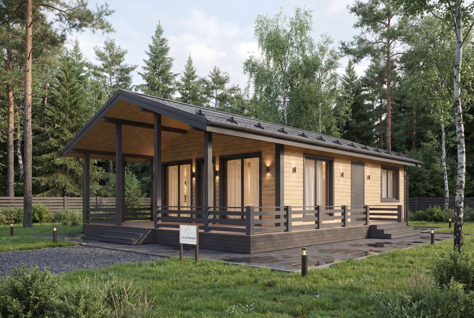 Проект дома «Мистолово» представляет собой элегантный одноэтажный дом с террасой, из экологически чистых материалов, который подходит для постоянного проживания. Строительство одноэтажного дома под ключ в Москве и Московской области потребует сроки до 27 дней. Вы можете заказать строительство без отделки или с чистовой отделкой и коммуникациями.