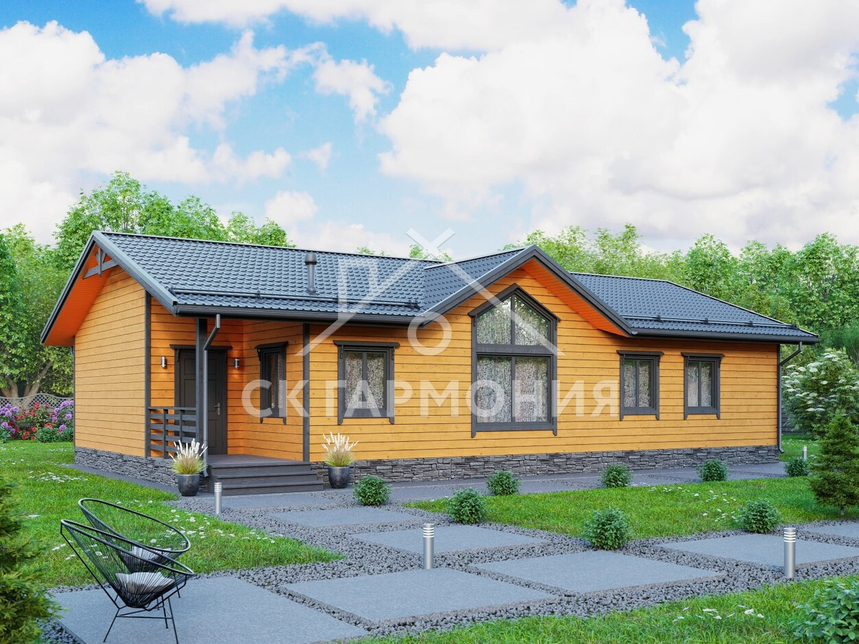 Проект дома «Первомайское» представляет собой элегантный одноэтажный дом с террасой, из экологически чистых материалов, который подходит для постоянного проживания. Строительство одноэтажного дома под ключ в Москве и Московской области потребует сроки до 36 дней. Вы можете заказать строительство без отделки или с чистовой отделкой и коммуникациями.