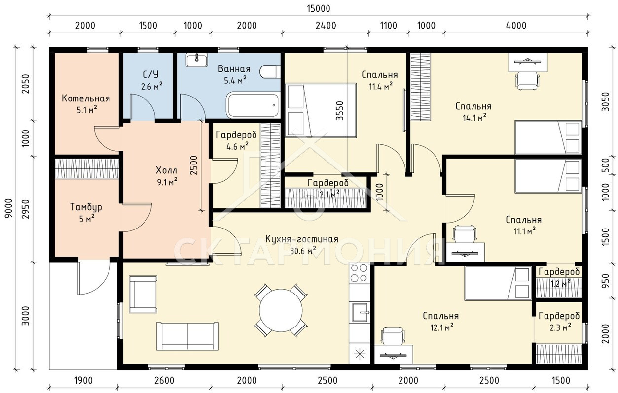 Цена строительства дома «Первомайское» размером 9x15 и площадью 135 м2 - от 3 037 000 р.