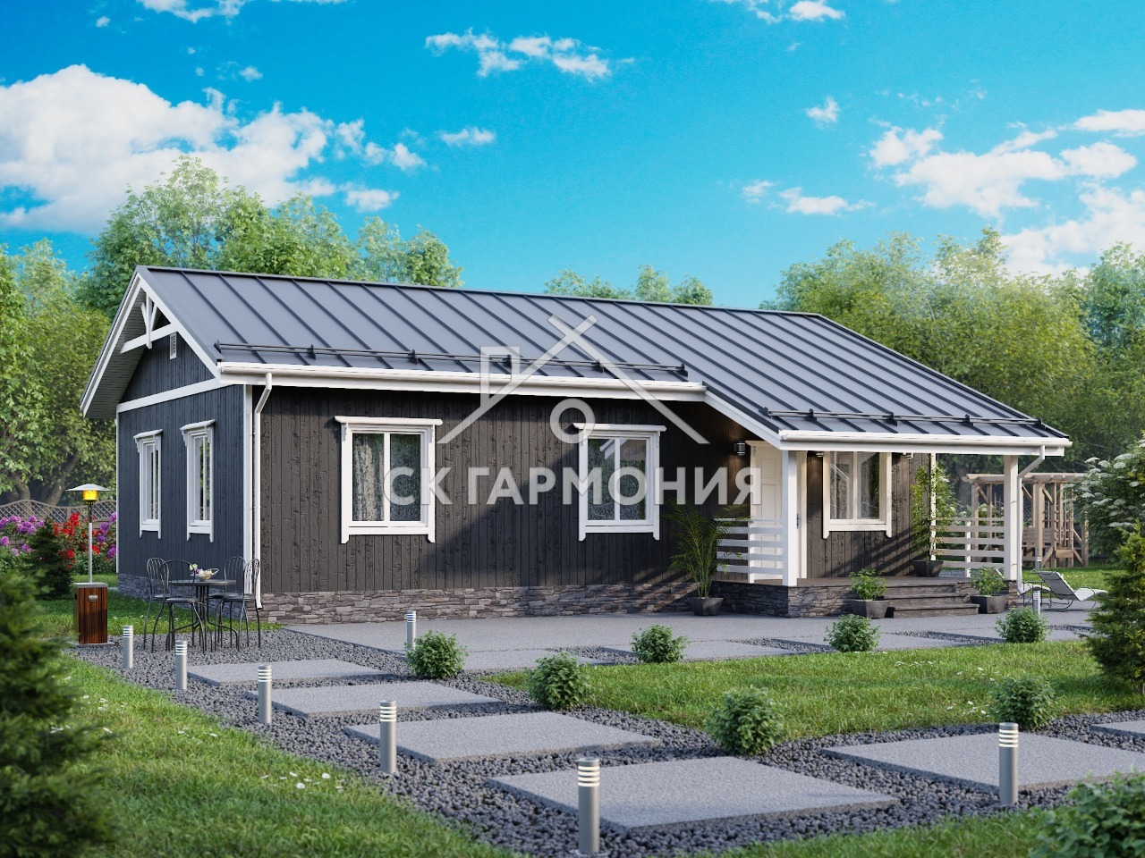 Проект дома «Руза» представляет собой элегантный одноэтажный дом с террасой, из экологически чистых материалов, который подходит для постоянного проживания. Строительство одноэтажного дома под ключ в Москве и Московской области потребует сроки до 27 дней. Вы можете заказать строительство без отделки или с чистовой отделкой и коммуникациями.