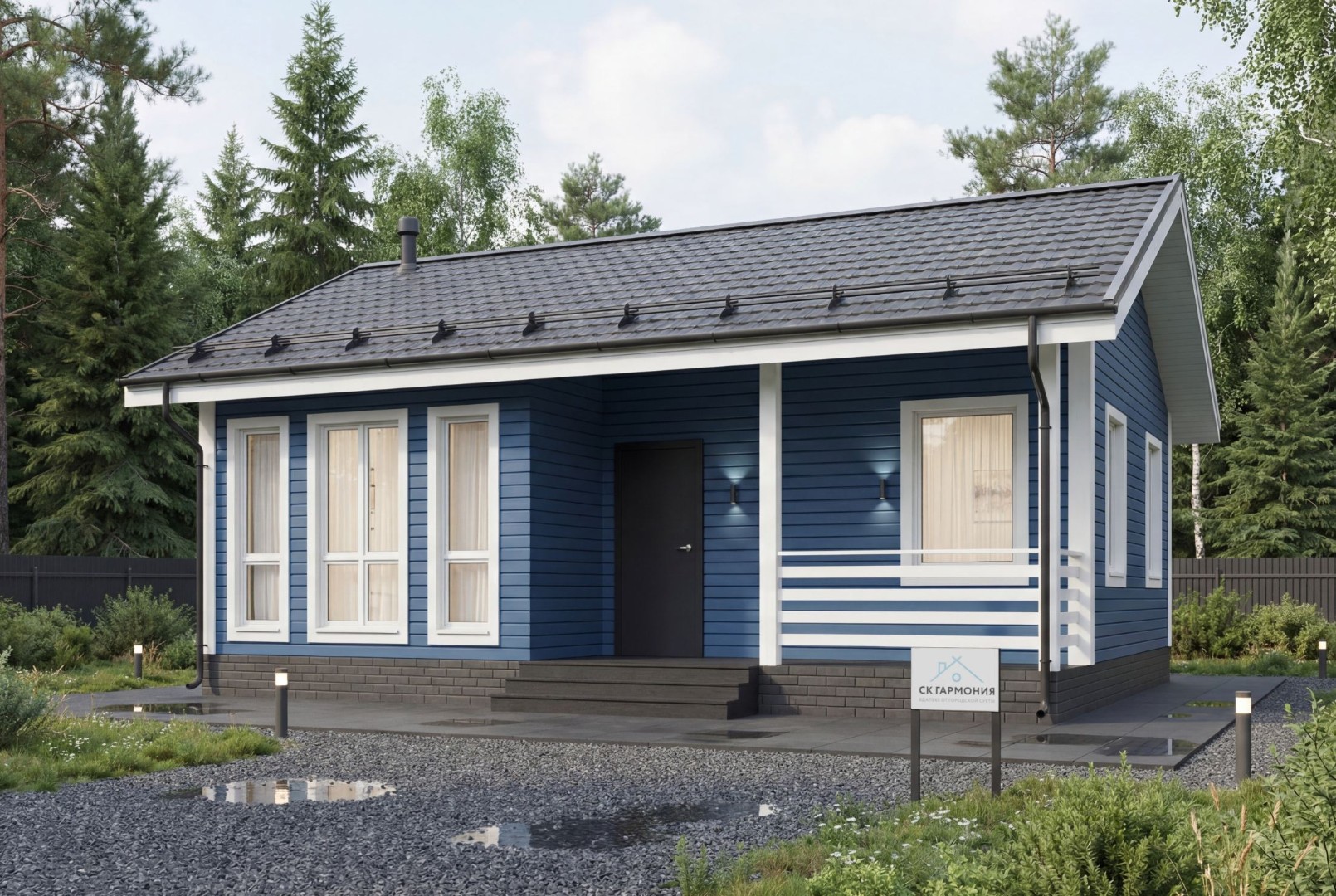 Проект дома «Владимир» представляет собой элегантный одноэтажный дом с террасой, из экологически чистых материалов, который подходит для постоянного проживания. Строительство одноэтажного дома под ключ в Москве и Московской области потребует сроки до 17 дней. Вы можете заказать строительство без отделки или с чистовой отделкой и коммуникациями.