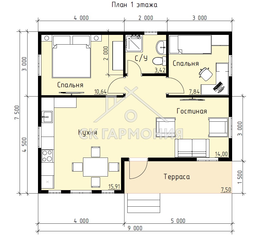 Проект дома «Всеволожск» представляет собой элегантный одноэтажный дом с террасой, из экологически чистых материалов, который подходит для постоянного проживания. Строительство одноэтажного дома под ключ в Москве и Московской области потребует сроки до 18 дней. Вы можете заказать строительство без отделки или с чистовой отделкой и коммуникациями.